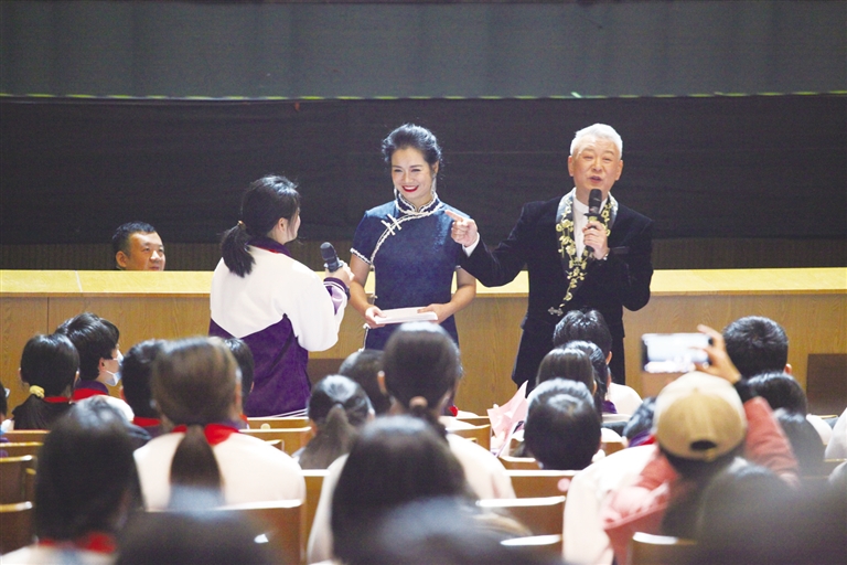 当舞台上红绸舞动如云霞流转,扫腿转、后空翻等武戏动作带起飒飒风声,台下小观众不由发出感叹:“太牛了吧!我还想看!”当日,保定市民族学校、保定市第三中学分校、保定师范附属学校、高新区第一中心学校等4家学校1000余名学生免费观演,真正实现剧院与校园双向奔赴,共建文教结合的新时代美育格局。