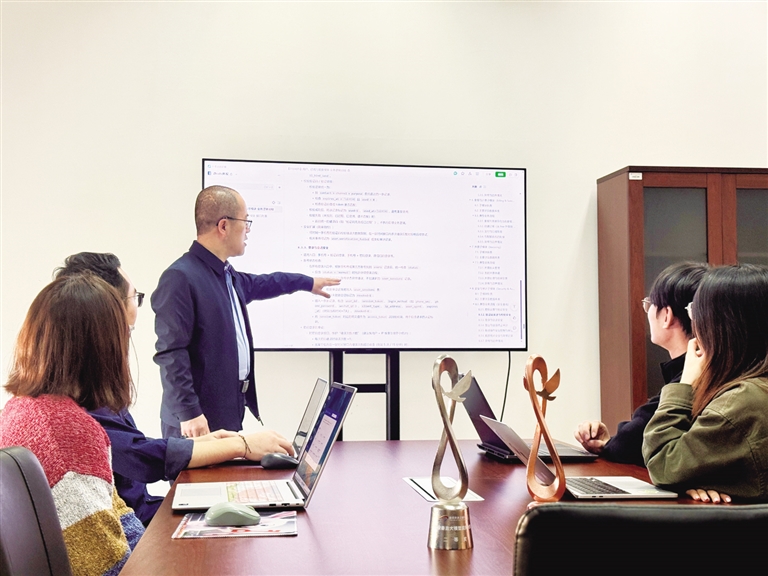 在华北电力大学计算机系的“海研”工作室里,这样的攻坚场景每天都在上演。不大的房间里,10余名研究生专注伏案,指尖在键盘上快速敲击。“最具挑战性的是数据标准化处理,其实就是把全世界的科研项目统一成一套通用语义标准。”研发团队核心成员杨振宇介绍,团队梳理出统一的“科研项目语义标准”,构建出统一的数据字典和关联模型,实现项目数据与科研成果的闭环链接。