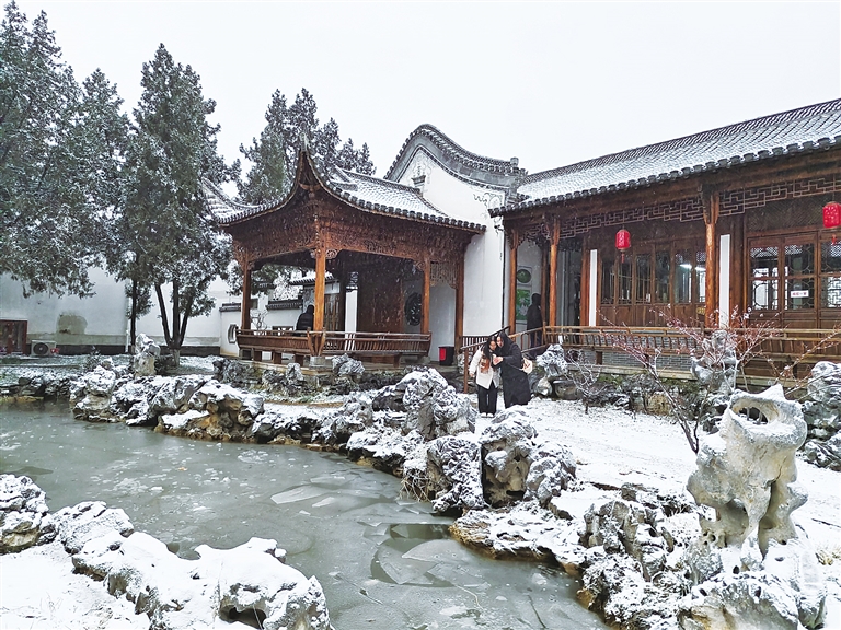 在冬日喧腾的竞秀公园深处,藏着一处凝结了粉墙、黛瓦、回廊、荷塘与石桥的静谧“江南”——竞秀书院,它隔开市声熙攘,将访客引入一方诗意天地。