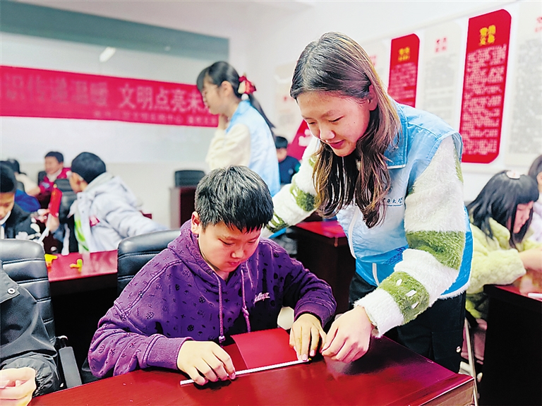 本报讯(新畿辅-保定晚报通讯员刘迪)12月20日,莲池区清山公爵城社区联合华北电力大学英语系微芒志愿服务队,共同开展“祖国旗帜在我心”主题课堂活动。20余名社区青少年齐聚一堂,在沉浸式互动体验中感悟红色精神、涵养家国情怀。