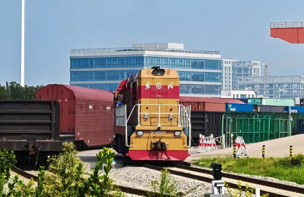 一列整装待发的中欧班列,即将从石家庄国际陆港启程前往明斯克。余陈军摄(资料片)