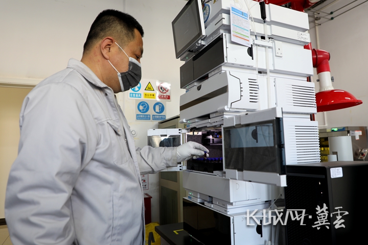 鼎材科技工作人员把发光材料放进液相色谱仪测试。长城网·冀云客户端记者 烟成群 摄