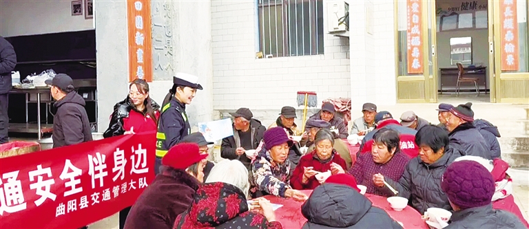 本报讯(新畿辅-保定晚报记者耿静 通讯员白秋媚)冬日虽寒,守护常在。近日,保定公安交管曲阳大队走进贾庄村村委会,将热腾腾的饺子和实用的交通安全知识一同送到老年群体身边,进一步增强他们的交通安全意识,从源头上预防和减少道路交通事故,营造文明出行的良好交通氛围。