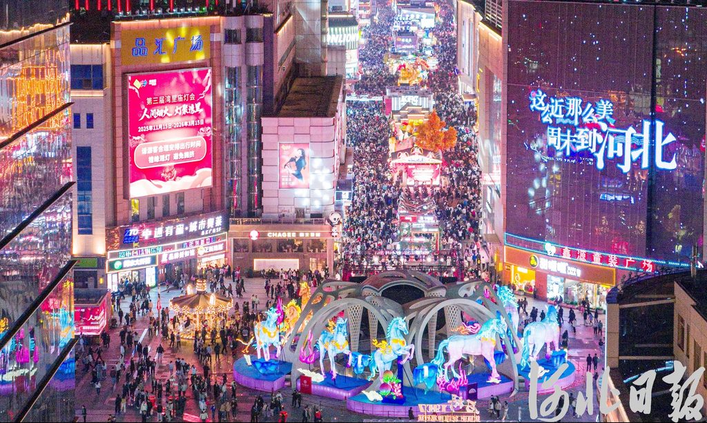 2025年11月15日,游客在石家庄湾里庙步行街游玩。河北日报记者 史晟全摄