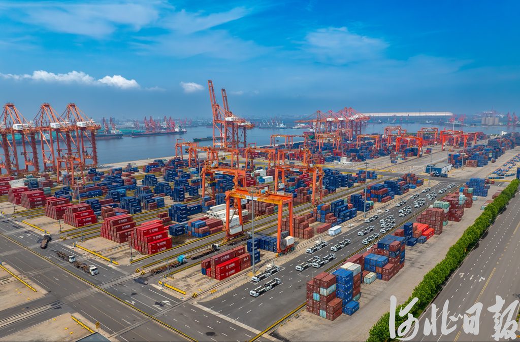 2025年7月8日,唐山港京唐港区集装箱码头一派繁忙景象。河北日报记者赵杰摄