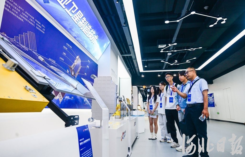 6月10日,雄安未来之城场景汇科创园二楼体验中心,参赛院校师生在空天信息展区观摩学习。河北日报记者 李东宇摄