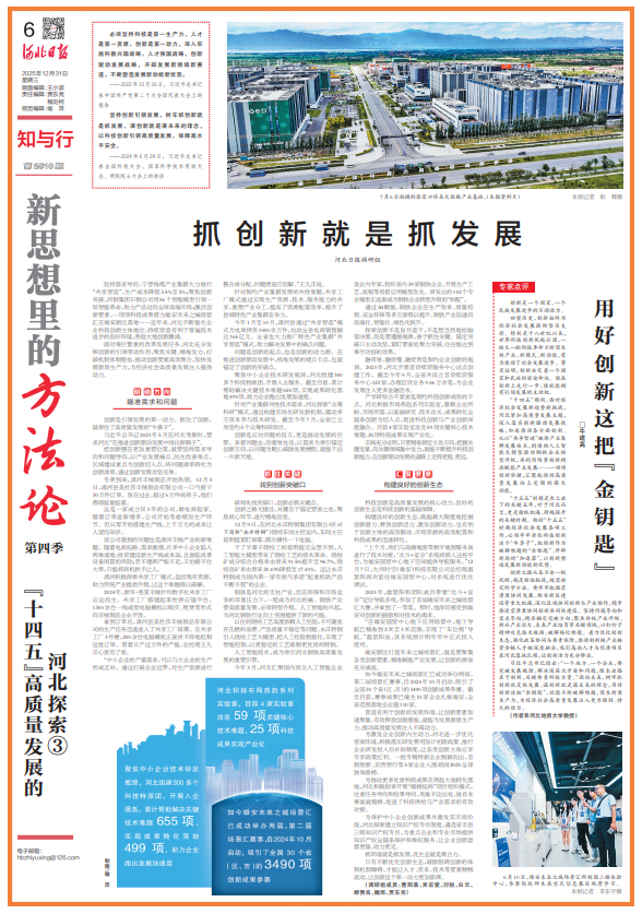 创新之路从来不会一帆风顺,越是面临挑战,越需讲究科学方法。要牢牢把握京津冀协同发展、雄安新区建设等重大机遇,深化区域协同创新与产业协作,稳步推进京津冀协同创新共同体建设。坚持问题导向和需求导向,精准锚定突破方向,聚焦传统产业升级、新兴产业壮大、未来产业培育等关键领域,以钉钉子精神攻克技术瓶颈、破解转化难题。着力优化创新生态,强化政策协同与要素保障,推动创新链产业链资金链人才链深度融合,吸引高端人才与优质项目在河北落地扎根,让创新活力充分释放。