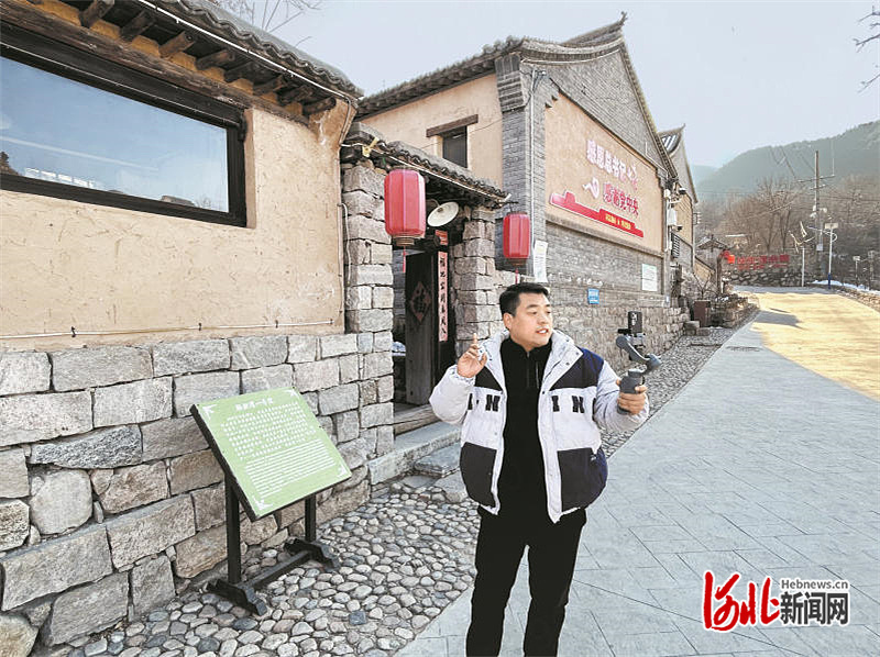 1月1日,在阜平县骆驼湾村,村民白龙正用手机直播,介绍村里的情况。 河北日报见习记者 李靖恬摄