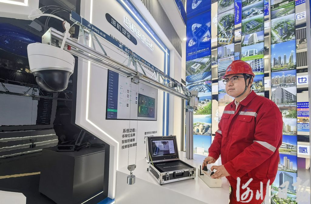 2025年12月30日,在中核雄安科技园项目产业地块,工作人员正在演示塔机限位、智能防碰撞与吊钩可视化系统。河北日报见习记者 李畅摄