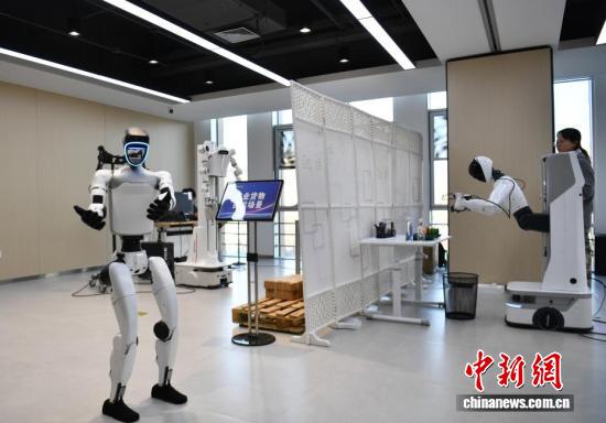 1月8日,河北雄安新区中国雄安集团数字城市科技有限公司(简称“数城公司”)具身智能训练场内,正在进行机器人家居生活应用场景训练。