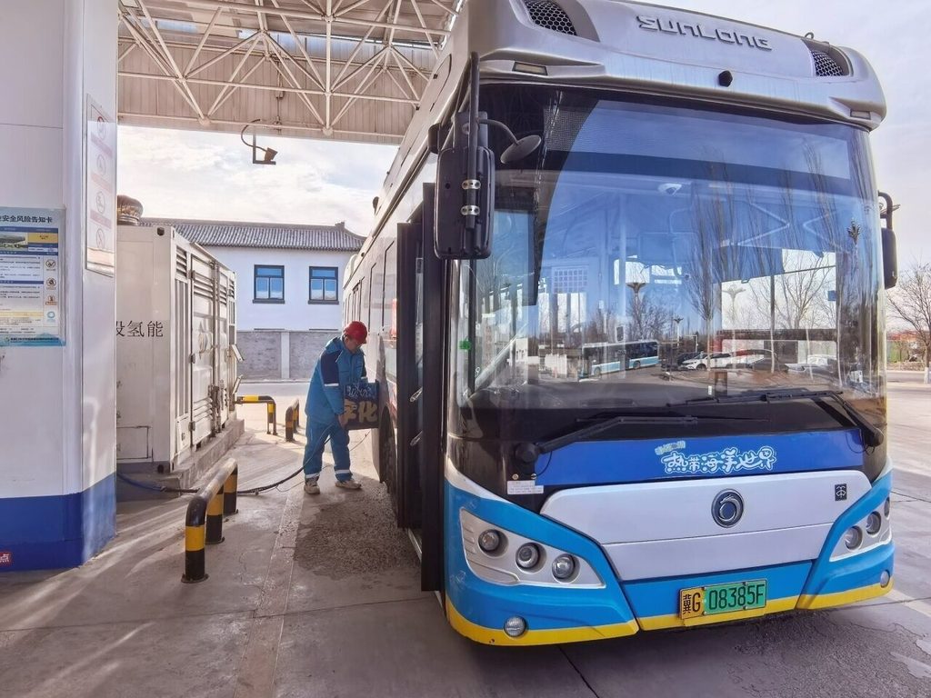 1月4日,在张家口市交投氢能新能源科技有限公司创坝加氢站,公交车正在加氢。河北日报记者 刘雅静摄