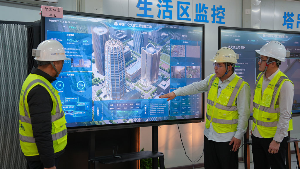 在项目智慧监控中心,电子大屏上的数据实时跳动:出勤人数、关键节点进度、任务完成率……项目整体进展一目了然。“我们联合华铸科技集团数字技术有限公司,共同建设了智慧工地管理系统,实现了对施工现场‘人、机、料、法、环’全要素的数字化、智能化、精细化管理。”中国中化大厦二期项目HSE(健康、安全、环境)负责人梁志伟介绍。