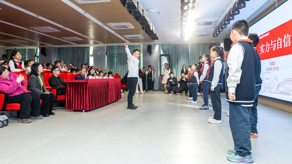 1月7日,奥运冠军张国政为200余名小学生带来了以“自信创造实力”为主题的奥运冠军思政课。