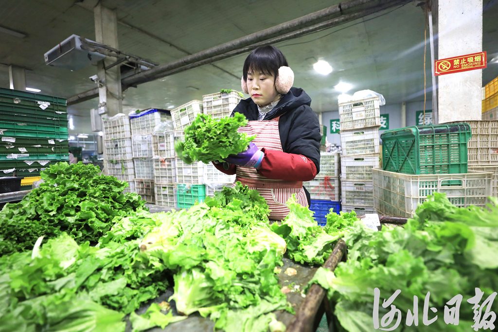 1月15日,固安县顺斋瓜菜种植专业合作社工作人员正在分拣生菜。河北日报记者 刘英摄