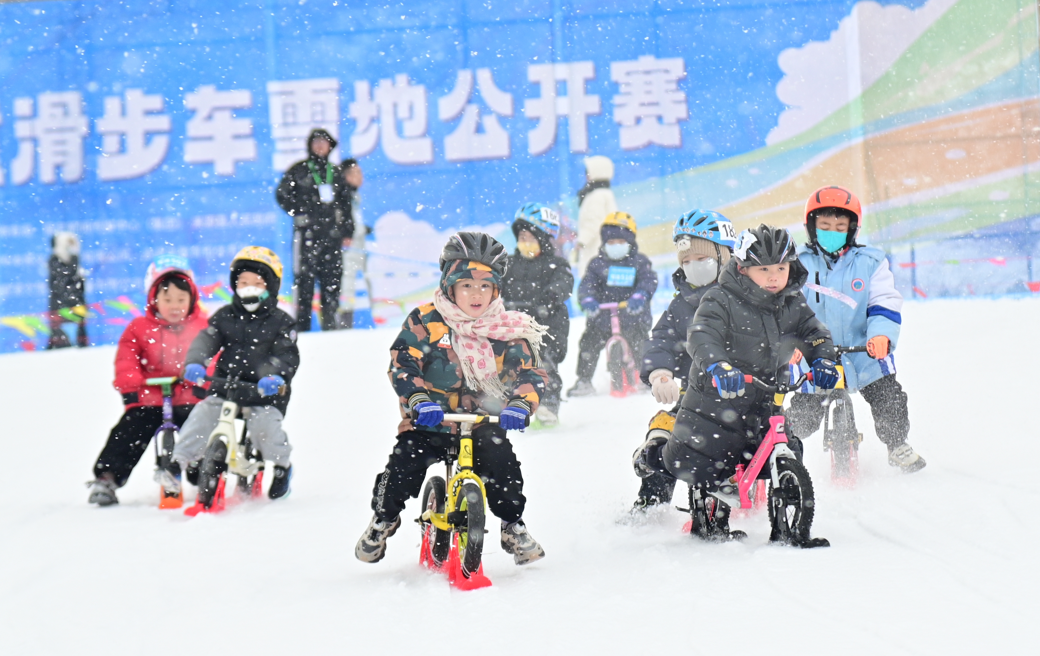 本报讯(新畿辅-保定日报记者郝子帅)1月17日下午,涞源七山滑雪场迎来一群朝气蓬勃的“小骑手”。2026京津冀儿童滑步车雪地公开赛火热开赛,这也是该项赛事首度从平地“跨界”进入冰雪赛道。近200名“全副武装”的小选手们脚踏滑步车、头戴护具,在专属雪道上竞逐,成为雪场最吸睛的一道风景。