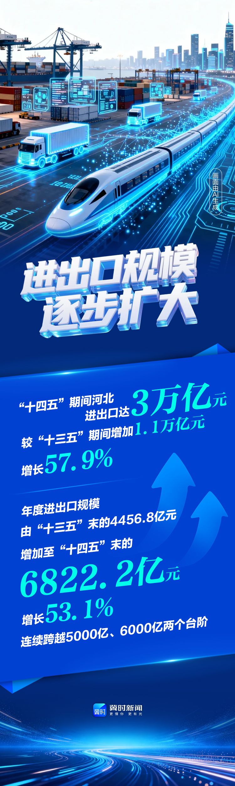 AI 海报·数说“十四五”河北答卷丨增长57.9%!河北进出口总值达3万亿元