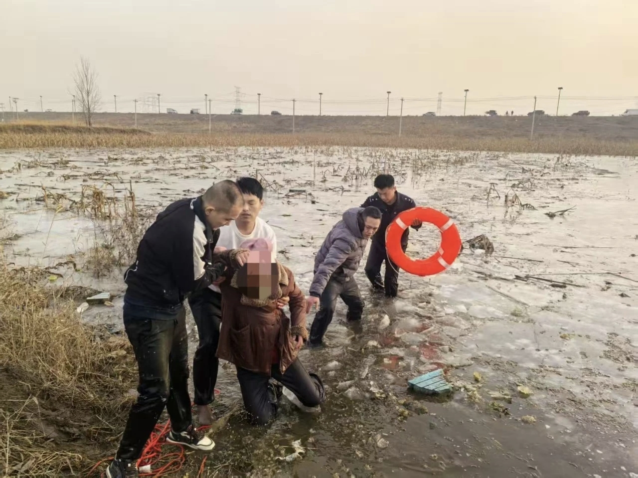 “冰面塌了,两个老人掉进去了,一动不动!”1月9日,一个急促的报警电话,将北南蔡派出所值班民警的心提到嗓子眼。在定兴县北南蔡乡有一片低洼的玉米地,夏秋积水未退,入冬后结成一层薄冰,冰下仍有半人深的积水与淤泥。两位老人行经此处时,冰层骤裂,人应声落水。其中一人在众人呼喊时已无反应,生命危在旦夕。