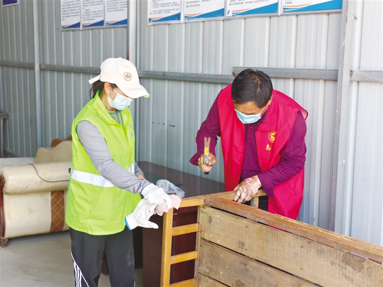 “我们提供回收渠道和初步分拣场地,企业提供技术、设计和改造能力。这种合作,把纯粹的‘行政成本’转化为了具有一定市场价值的社会投资。最大的不同是,它形成了一个良性闭环,居民看到旧物能‘重生’,更愿意配合分类回收,改造后的家具部分售出反哺项目,部分捐赠给有需要的家庭,实现了环保、公益与社区情感的联结。”张新月说。