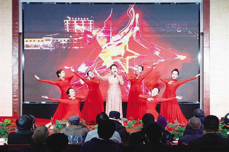 大屏幕上,86岁的阜平籍作家赵新、102岁的晋察冀日报社革命前辈陈英,通过视频向阜平的父老乡亲送上新春祝福,祝福阜平明天更加美好、百姓生活幸福安康。