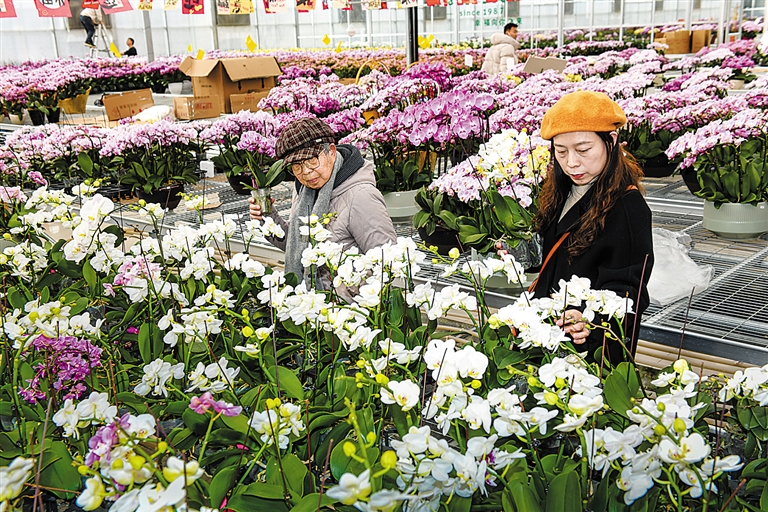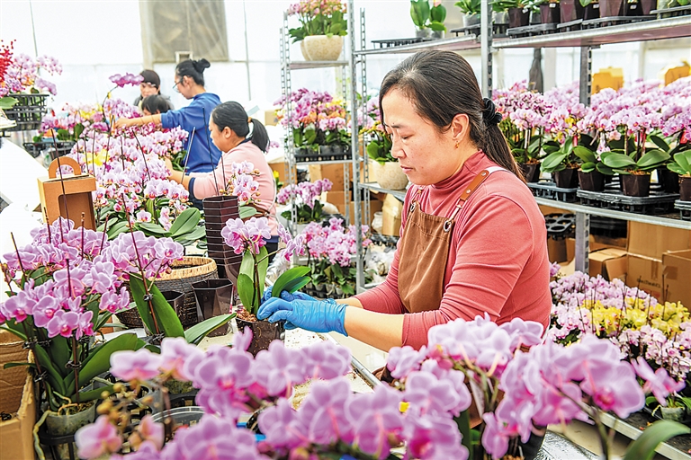 眼下正值年宵花销售旺季,基地内打包、分拣、装车有序进行,这批蝴蝶兰主要销往京津冀各地,同步供应周边市场,为千家万户送去新春芬芳与吉祥寓意。一朵朵娇艳的蝴蝶兰,既是节日里亮眼的年宵花,也成为当地特色花卉产业助农增收、点亮乡村振兴的生动写照,以繁花盛景迎接马年新春,让花香与年味一同飘进京津冀的千家万户。