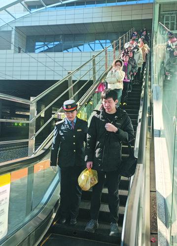 刘晓宇护送重点旅客进站乘车。 新畿辅-保定日报记者 耿静 摄